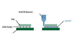 High and uniform surface energy is the key prerequisite for underfill materials to wet reliably and flow seamlessly. With Openair Plasma®, substrate surfaces are activated directly in the inline process, ensuring that the underfill is optimally distributed and adheres reliably. At the same time, even the finest particles and residues from the dicing step are thoroughly removed. The result: perfect fillet formation, significantly fewer air pockets (voids), and encapsulation that provides maximum reliable protection in everyday use and under stress.