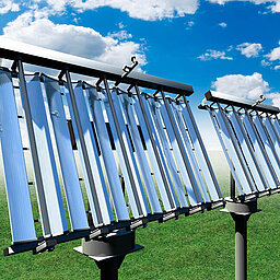 With the plasma coating in the PlasmaPlus® process, solar thermal mirrors in solar energy systems can be reliably provided with a glass-like corrosion protection coating (solar thermal energy).