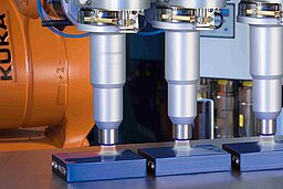 On the way from individual cells to battery modules and packs, Plasmatreat's Openair-Plasma technology is used in a variety of applications. For example, the aluminum surface must be optimally cleaned and activated before the (insulation) bonding of the individual cells to each other, so that there are no failures due to overheated cells later on throughout the entire service life. Absolute freedom from particles is also absolutely essential for electrical contacting. Plasma treatments also enable improved adhesion when bonding the heat-conducting plate under the battery (thermal management) and ensure complete sealing of the battery housing. Regardless of the type of sealing system (sprayed, bonded or FIPG), joints made of aluminum and plastic are highly susceptible to infiltration due to the difference in H2O affinity. Highly effective protection is provided by the plasma polymer nanocoating PlasmaPlus from Plasmatreat. This is applied to the metallic component after cleaning and activation with Openair-Plasma. This creates a media-tight bond in the subsequent injection molding process. In this way, a significant increase in the barrier effect against corrosive electrolytes is provided and, at the same time, extremely high and long-term stable corrosion protection.