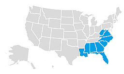 Responsible for LA, MS, AL, GA, FL, TN, SC, NC, VA, WV